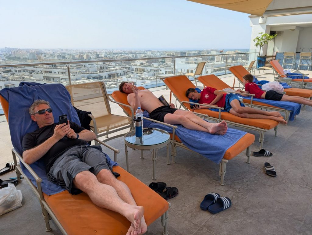 Sebastian hat sich am Pool mit einem Mann aus Sur unterhalten und sich ein paar Tipps zum Weihrauch kaufen bekommen.