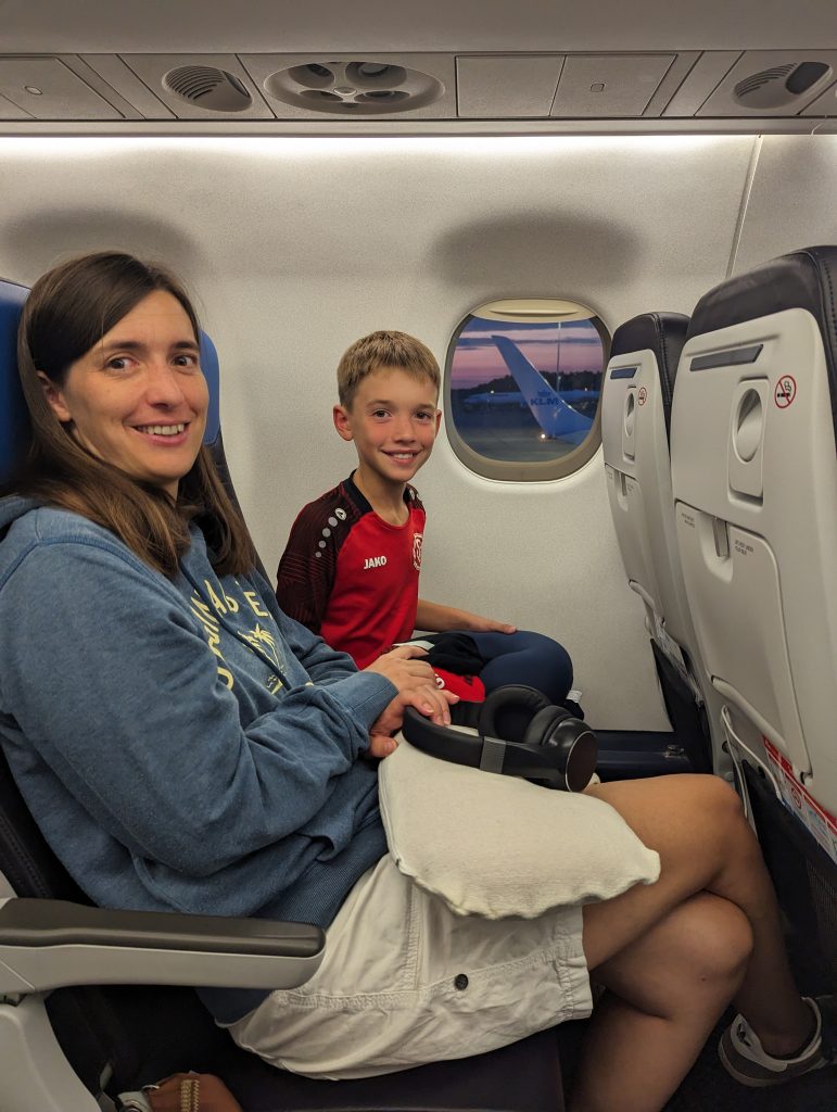 Der Anschluss Flug von Amsterdam nach Seattle hat etwa 2,5 Stunden Verspätung, so dass wir am Flughafen eine längerer Wartezeit haben. Wir beschäftigen uns mit Lesen, Schlafen und Netflix schauen. Beim Boarding dann ein kurzer Schreckmoment, Yannicks Boarding Pass wird nicht akzeptiert und wir müssen zu einem Schalter. Es war dann alles nicht so schlimm, wir haben nur andere Plätze zugewiesen bekommen. Im Economy Plus Bereich. Also ein kleines Upgrade als Entschädigung für die Verspätung.