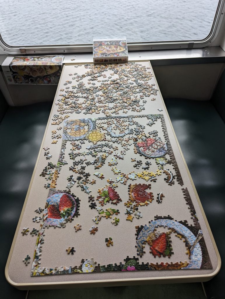 Auf der Fähre lag ein Puzzle auf, das die Fahrgäste gemeinschaftlich lösen müssen, denn in der halben Stunde, die die Überfahrt dauert kriegt man das sicher nicht hin. Von Coupeville ging es dann weiter über den Deception Pass mit einer tollen Aussicht und einer beeindruckenden Brücke nach Anacortes.