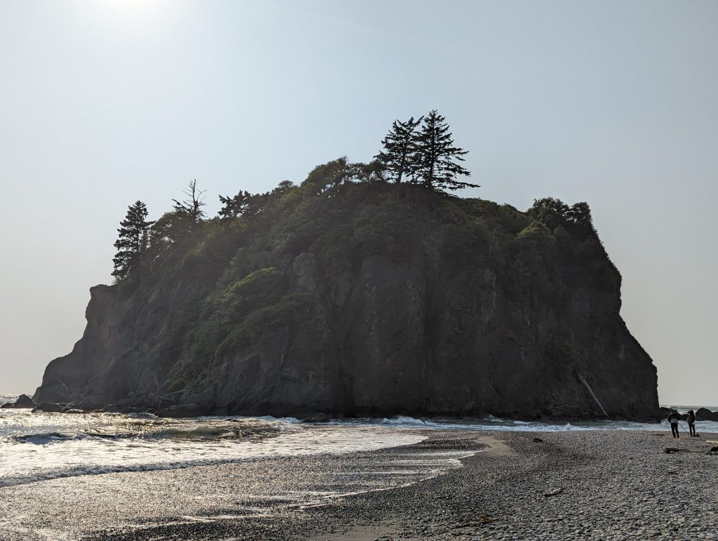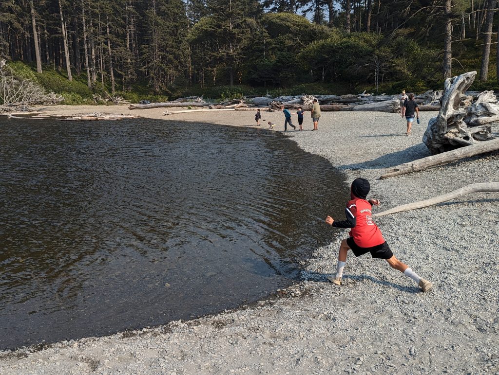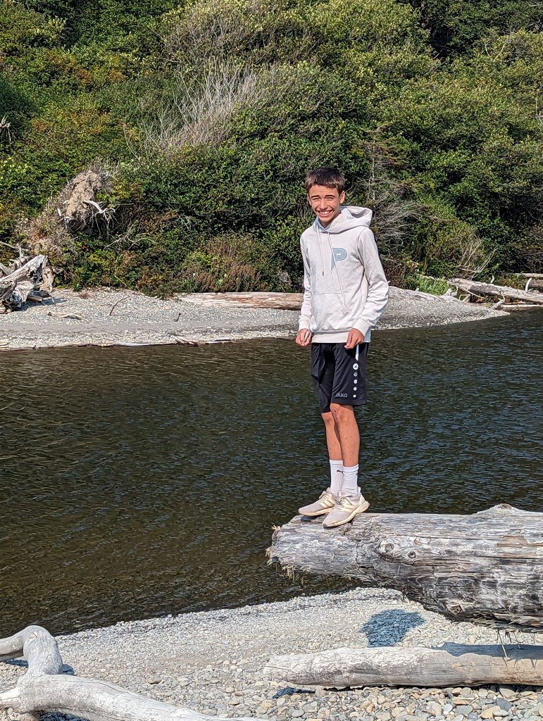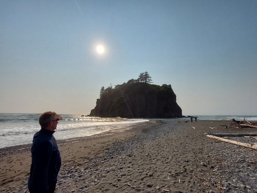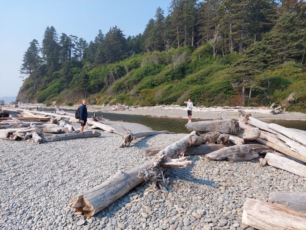 Nach der Wanderung im Hoh Valley National Park und einer kurzen Pause in der Unterkunft sind wir zu Ruby Beach gefahren. Ein Strandabschnitt mit vielen angespülten Baumstämmen und Felsen, an denen sich die Wellen brechen. In den Tide Pools haben die Jungs Steine flippen lassen.