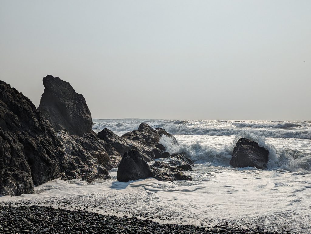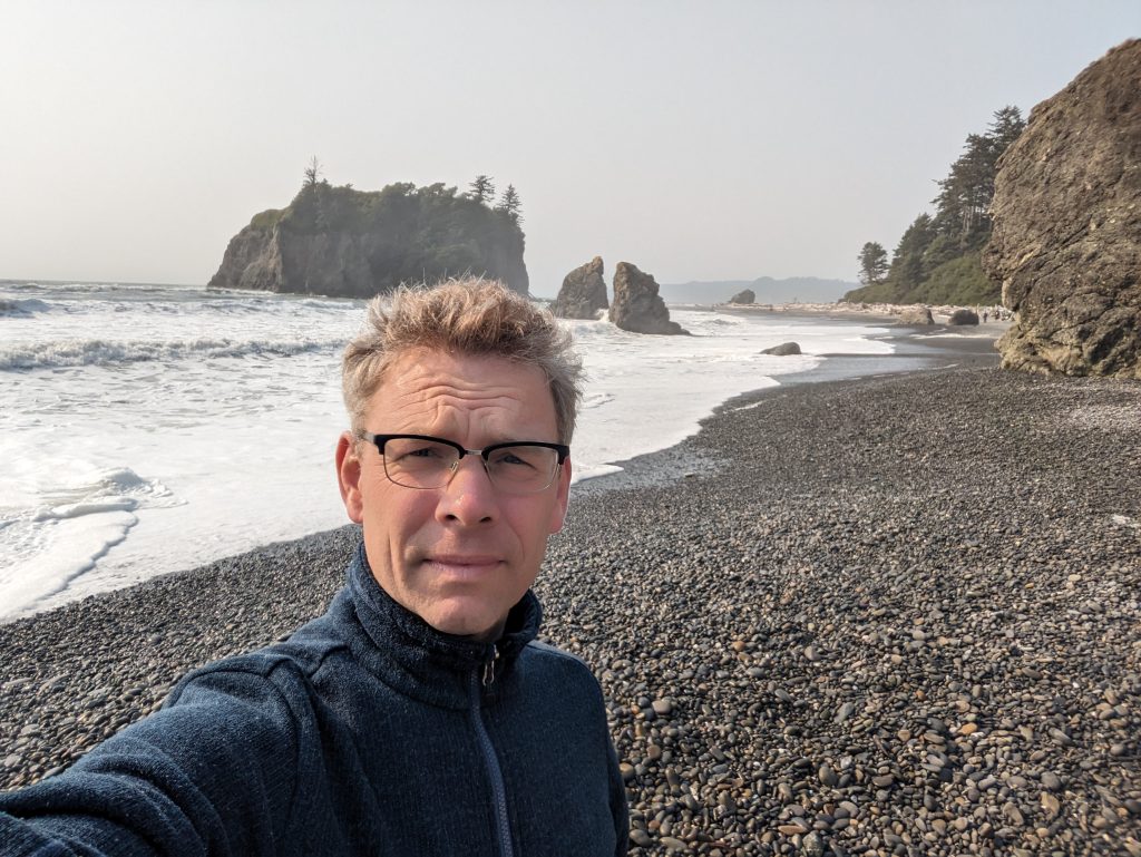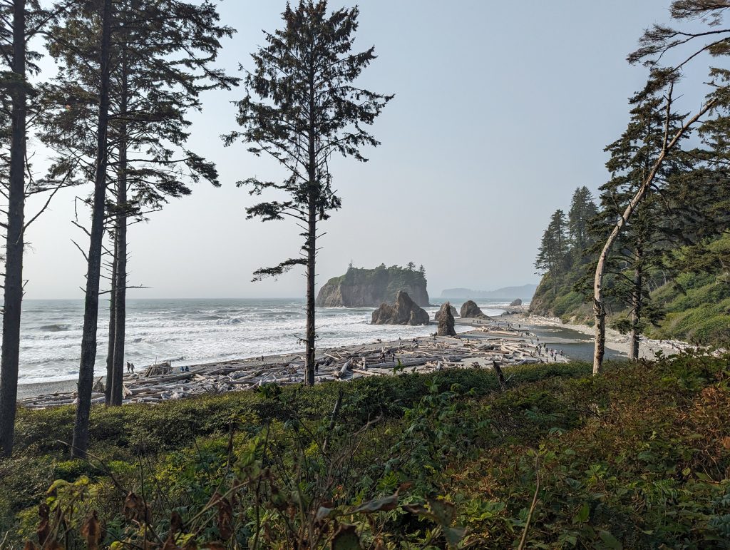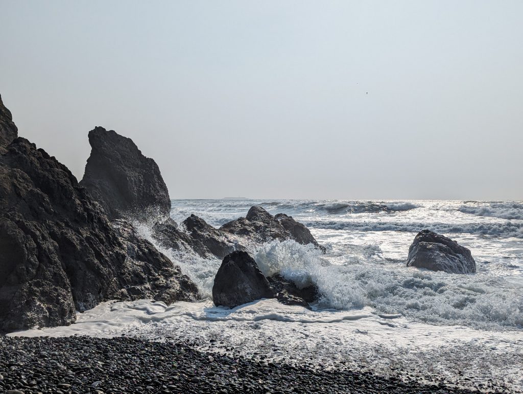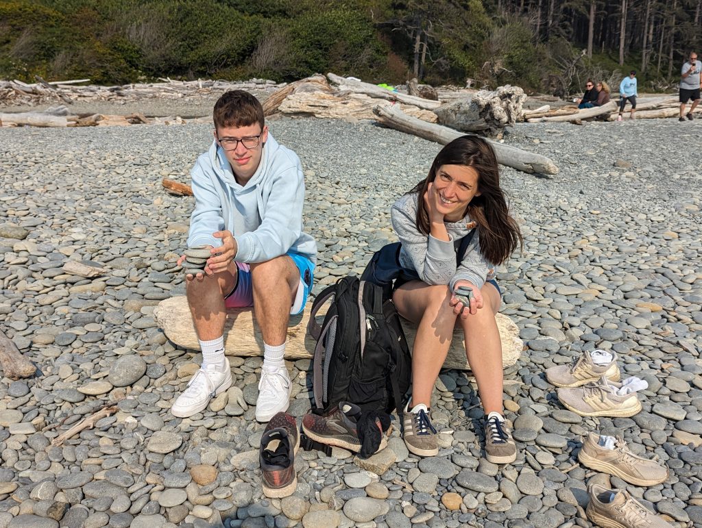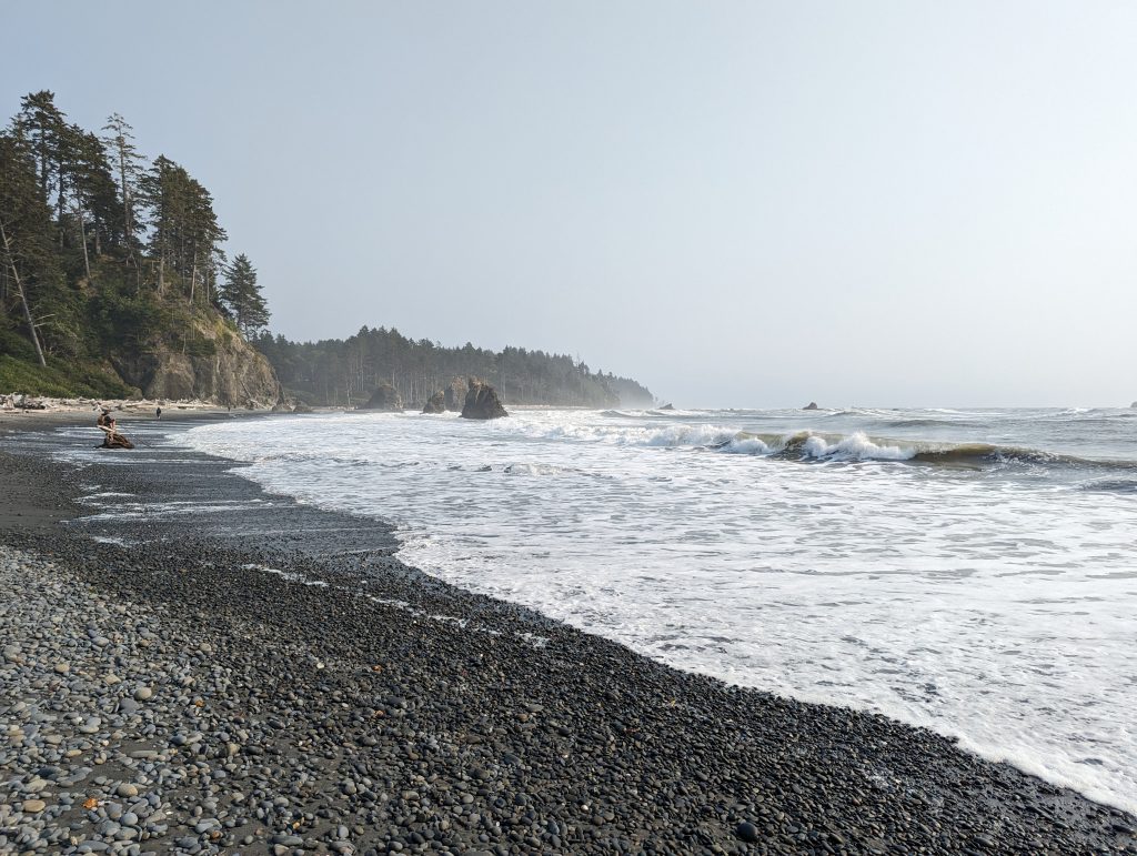 Nach der Wanderung im Hoh Valley National Park und einer kurzen Pause in der Unterkunft sind wir zu Ruby Beach gefahren. Ein Strandabschnitt mit vielen angespülten Baumstämmen und Felsen, an denen sich die Wellen brechen. In den Tide Pools haben die Jungs Steine flippen lassen.