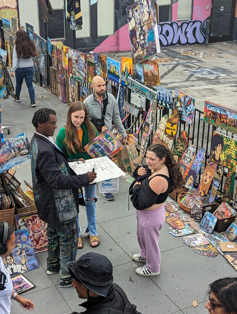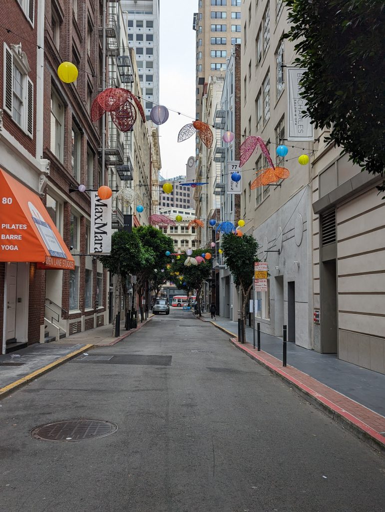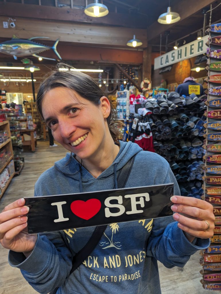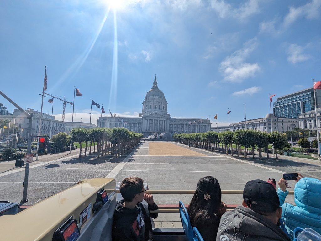 Wir haben uns entschieden, mit dem Touribus durch die Stadt zu fahren, weil wir zu müde sind, durch die ganze Stadt zu laufen. Wir haben uns dann gleich ein 2-Tages-Ticket besorgt, weil da auch noch eine Führung durch Chinatown und ein Rabatt auf den Fahrradverleih dabei ist. Vorher drehen wir eine kleine Runde zum Union Square und zu The Emarcadero, wo heute Markttag war.