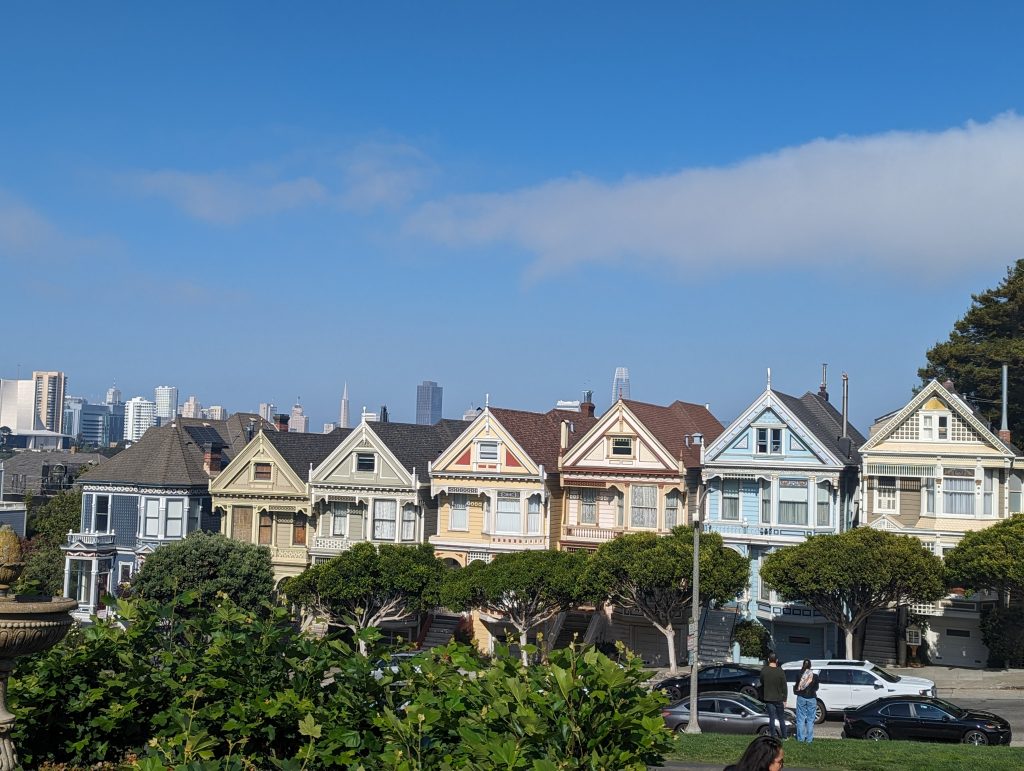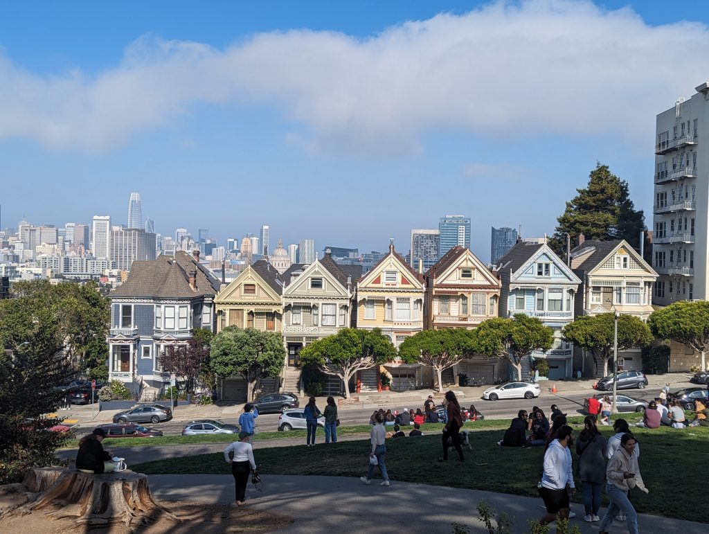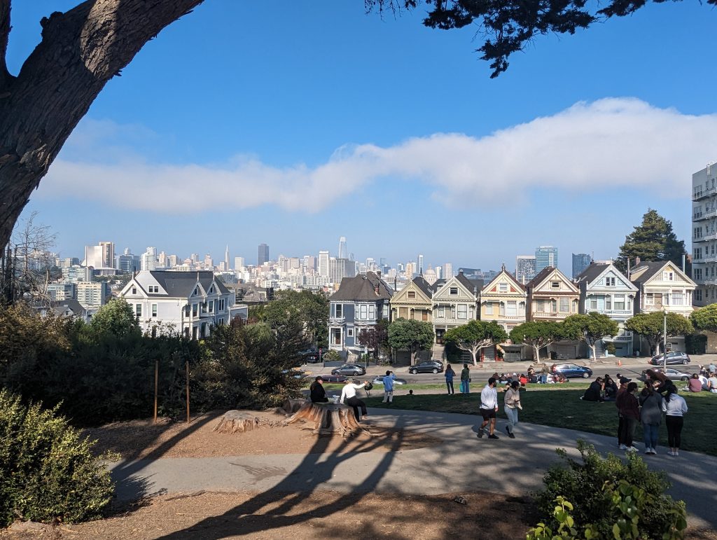 Danach ging es (mit einer Reis- und einer Nudelbox vom China-Restaurant R&G Lounge als Proviant) mit dem Bus zu den Painted Ladies einer Reihe sehr berühmter Häuser (gebaut zwischen 1892 und 1896) in der sogenannten Postcard Row. Daneben liegt ein schöner Park, in dem viele Menschen zum Picknick waren.