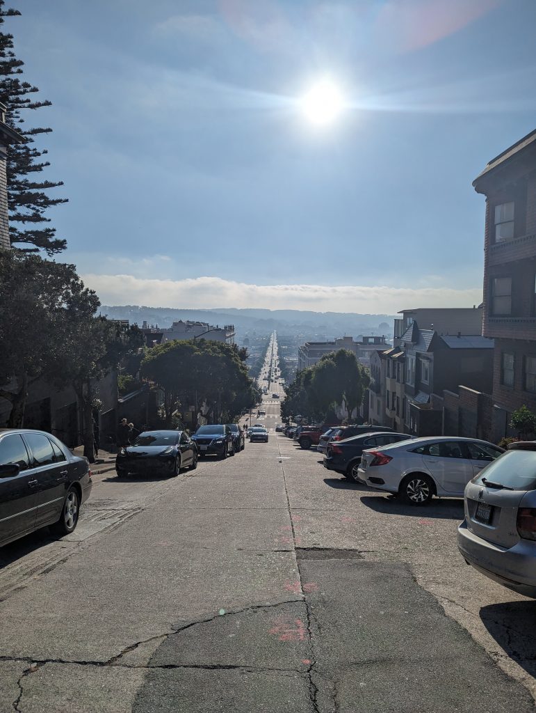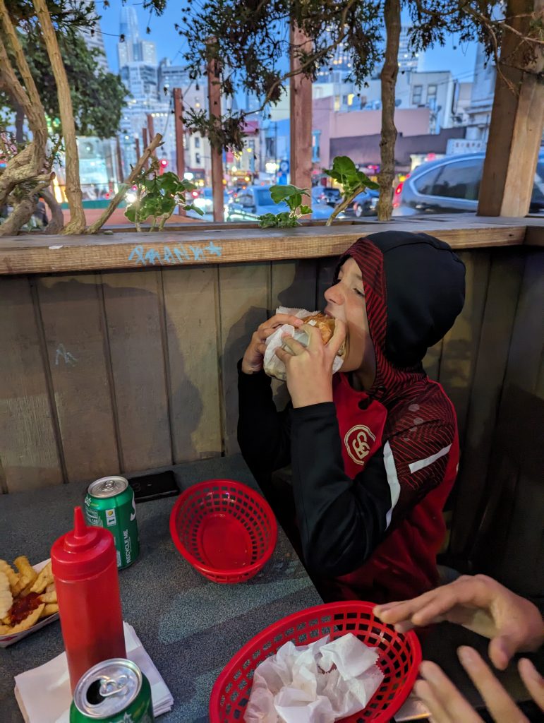 Im Anschluss haben wir uns noch die Lombard Street angeschaut. Die Straße war ursprünglich sehr steil und die Steigung wurde durch 8 Haarnadelkurven und einen serpentinenartigen Verlauf abgemildert . Danach sind wir noch durch Fisherman’s Wharf geschlendert und von dort – natürlich nicht ohne den obligatorischen Burger von Buster´s Cheese Steak– über das inzwischen dunkle Chinatown zurück zum Hotel.