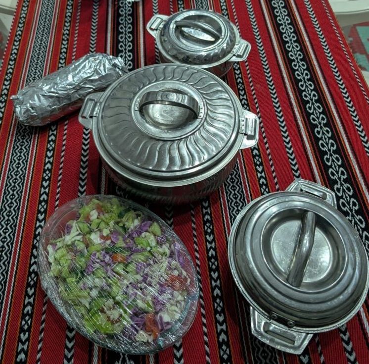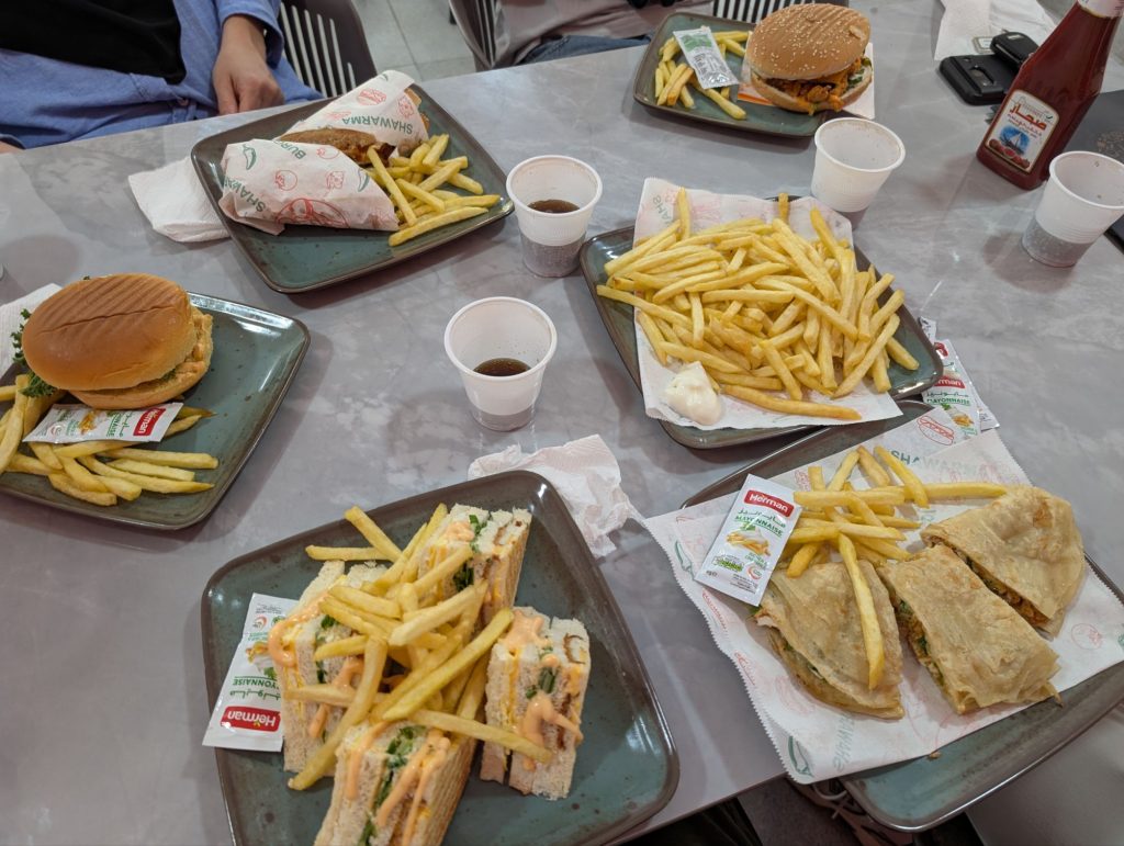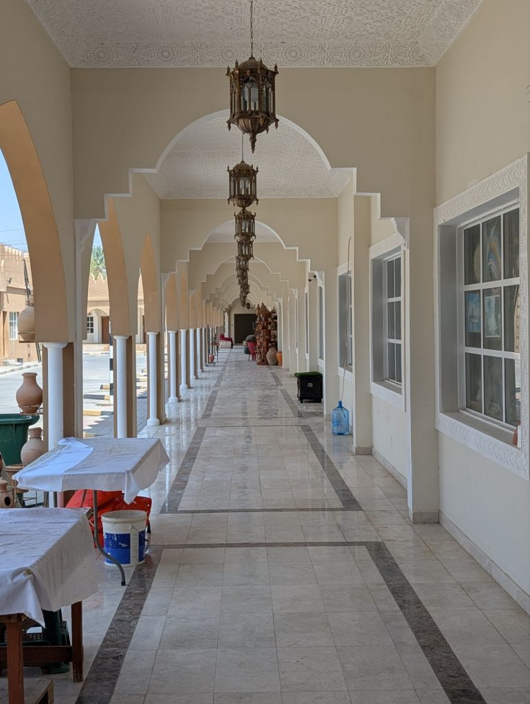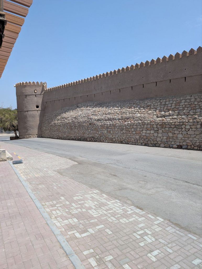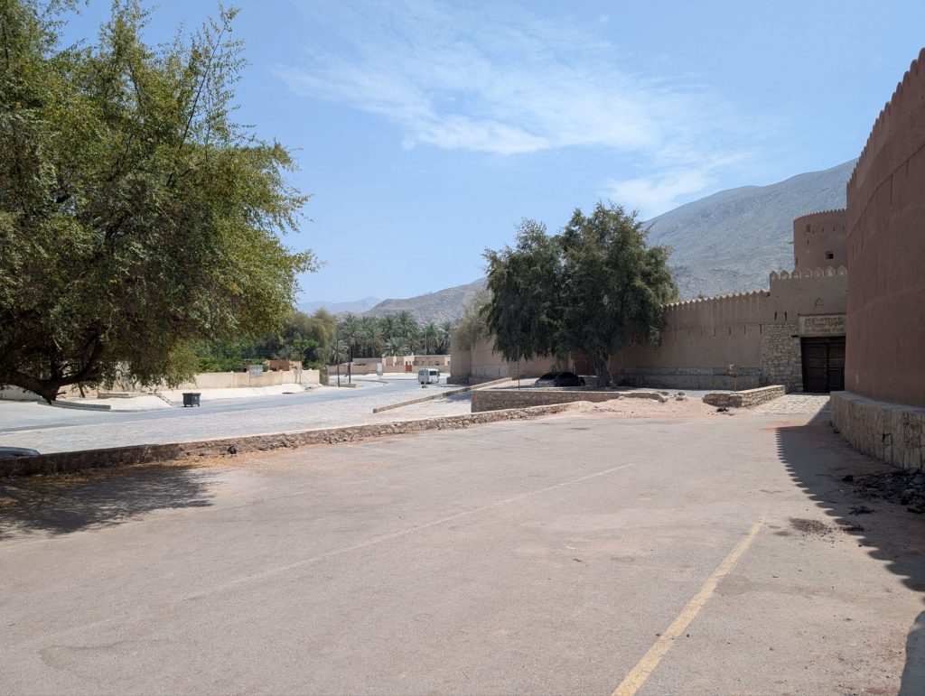 Trotzdem haben wir uns aus dem Auto getraut und das Fort zumindest von außen angeschaut. Im Souq war Mittagspause und die Verkäufer lagen einfach auf dem Boden und haben sich ausgeruht. Das ganze wirkte sehr surreal und wir fühlten uns, wie in einer verlassenen Geisterstadt im wilden Westen. Wir gönnten uns einen Snack im Restaurant um die Ecke.