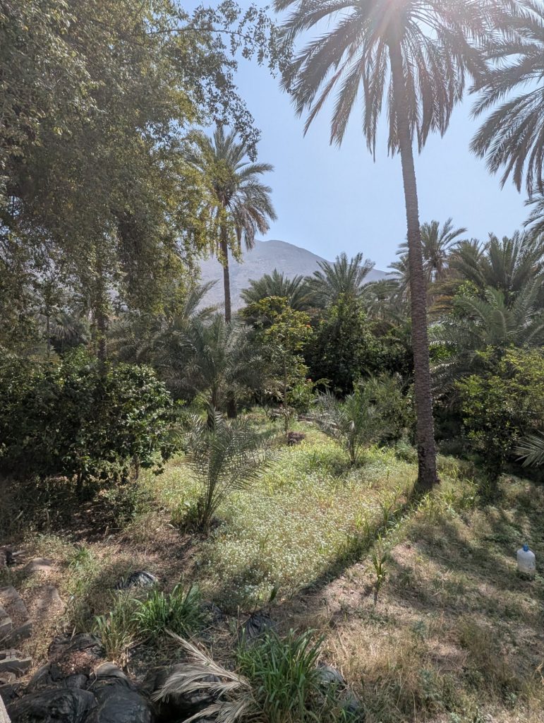 Wir haben das Fort außen umrundet und einige grüne Flecken gefunden. Hier wird, unterstützt durch Bewässerungskanäle, Landwirtschaft betrieben.