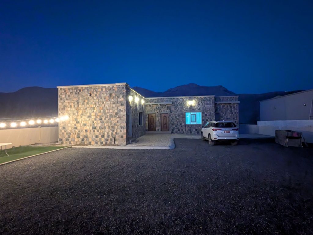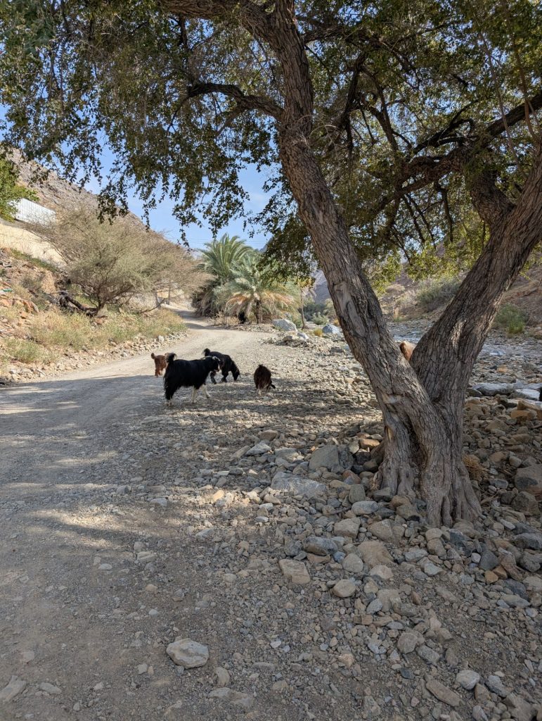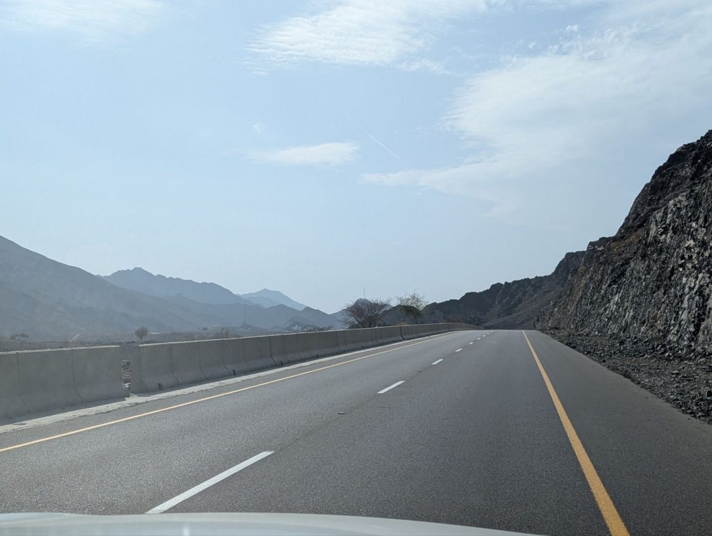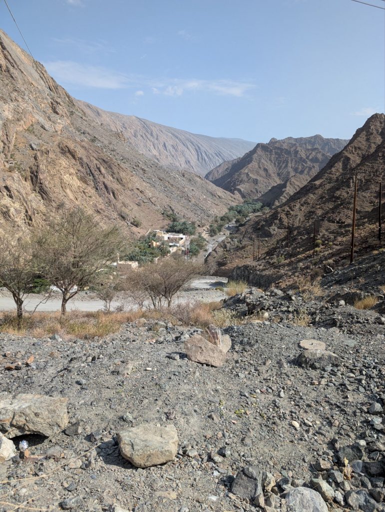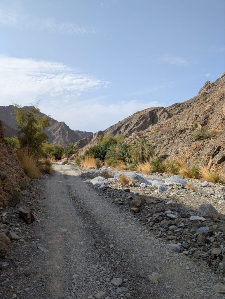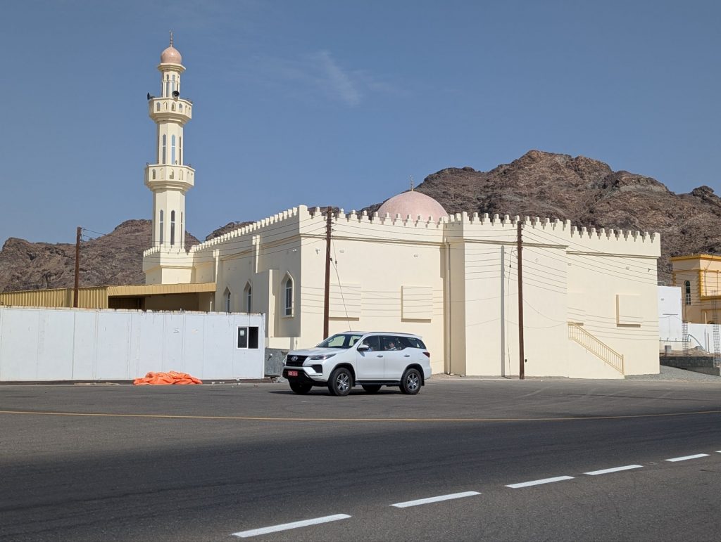 Anschließend ging es weiter ins Hadschar-Gebirge und die Fahrt hielt einige abenteuerliche Abschnitte für uns bereit. Gut, dass das Auto Allrad Antrieb hat, obwohl er auf diesem Abschnitt durch ein Wadi nicht unbedingt nötig gewesen wäre. Vorher haben nochmal vollgetankt – 33 Liter für 18,40€!