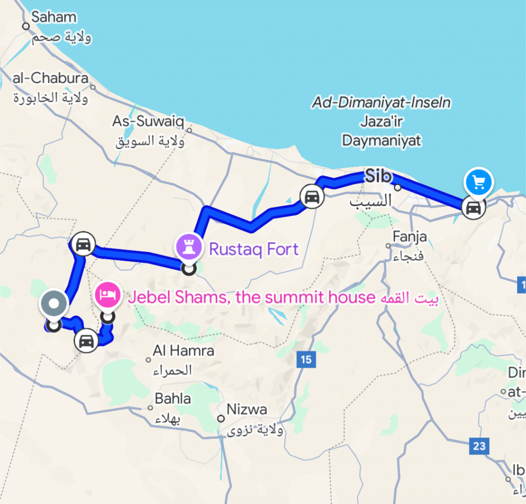 Unterwegs zu unserer neuen Unterkunft, Jabal Shams – The Summit House machen wir einen Zwischenstopp in Rustaq. Rustaq ist eine Stadt am nördlichen Rand des Hadschar-Gebirges.