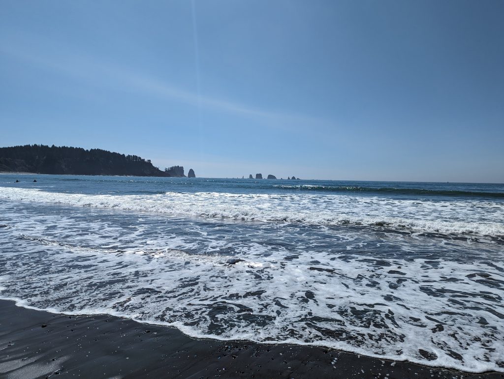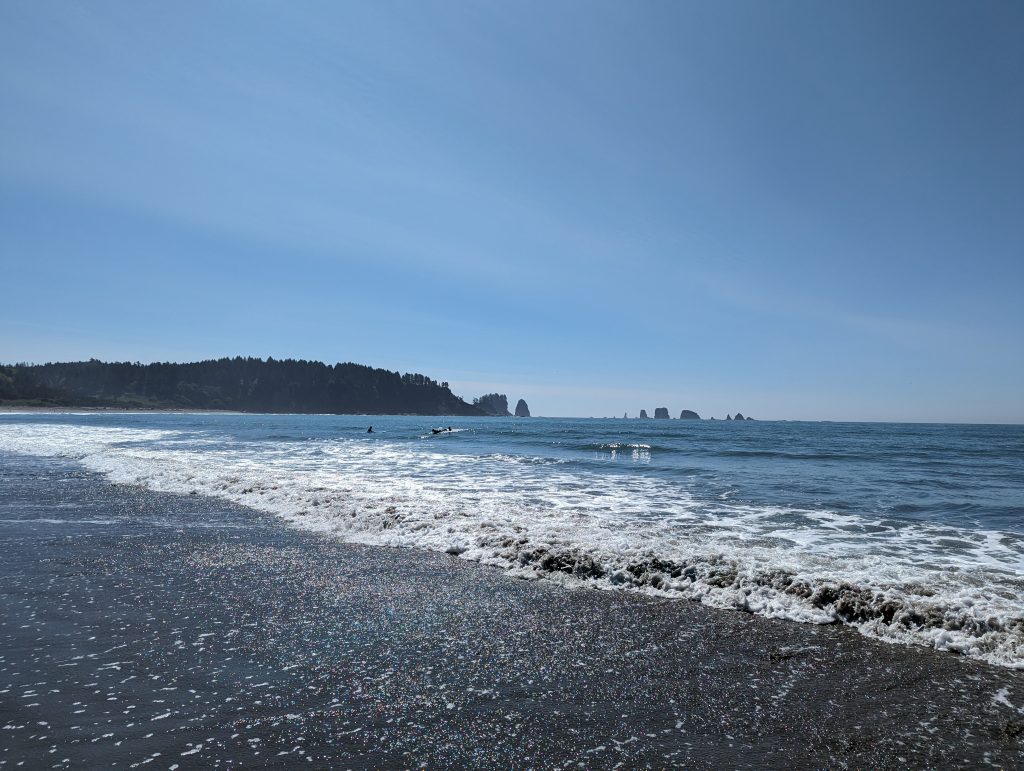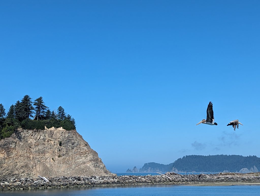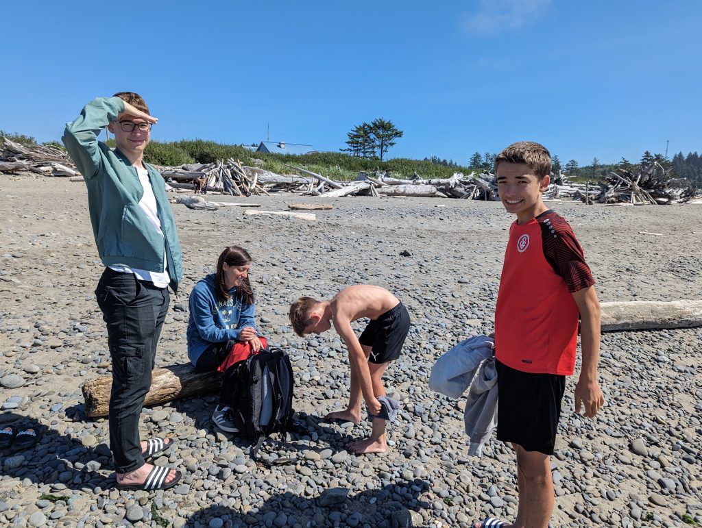 Heute wechseln wir die Unterkunft und beziehen in Port Angeles ein neues Quartier. Unterwegs fahren wir zu La Push – First Beach und beobachten dort Möwen und Pelikane. Zuerst hat uns dabei ein Hund gestört, der unbeaufsichtigt am Strand rumlief. Eigentlich war er aber ganz brav. Tobias wurde von einer etwas höheren Welle erwischt und musste sich am Auto umziehen. Yannick und Sebastian sind sich sicher eine Robbe gesehen zu haben.