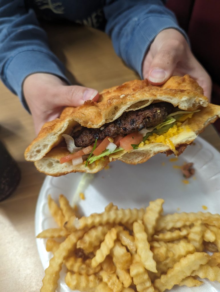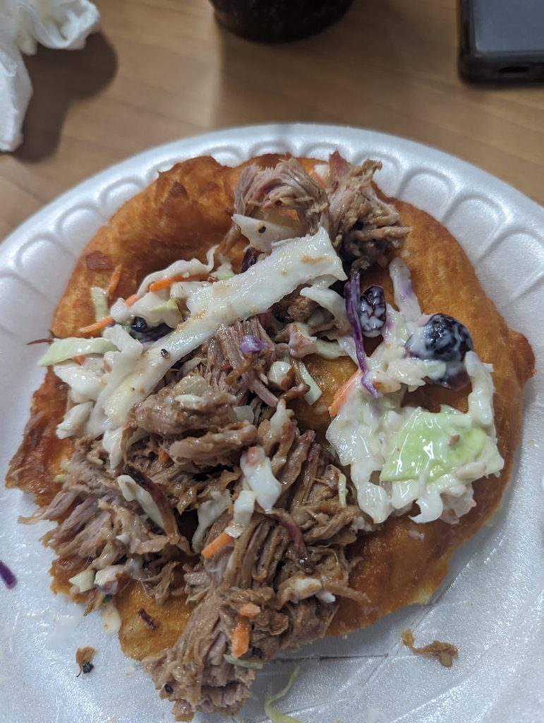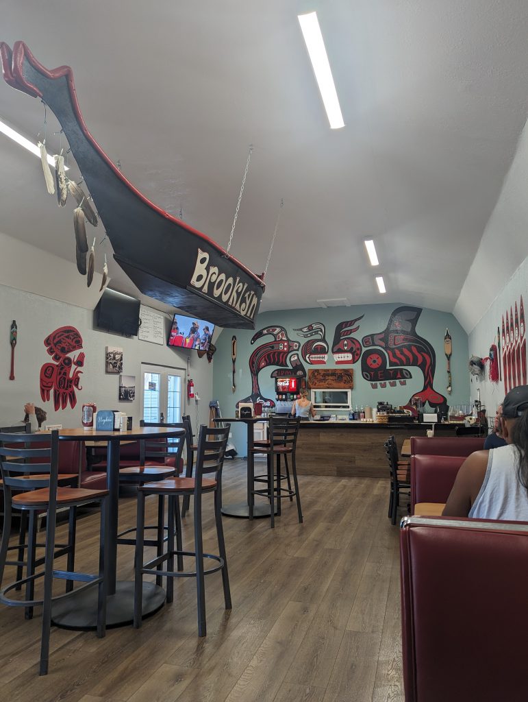 Nach dem Abstecher zum Strand sind wir zum Essen ins Where’s the Frybread in Forks. Dort gab es Frybread als Burger oder Taco. Mal was anderes, aber auch sehr lecker. Frybread ist ein Gericht der nordamerikanischen Ureinwohner. Man kann sich das ein bisschen wie Langos vorstellen – zum Beispiel mit Pulled Pork, oder auch zusammengeklappt und wie ein Burger belegt.