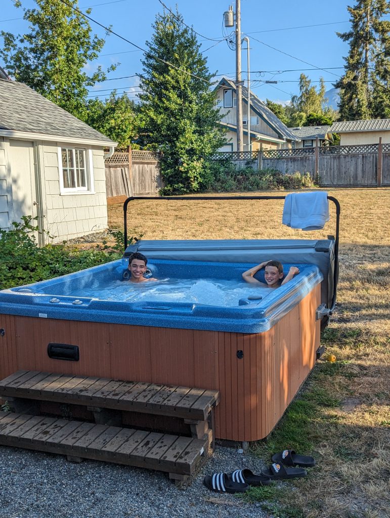 Es war super! Der Whirlpool wurde ganz viel benutzt, auch wenn wir nur zwei Abende da waren. Jetzt sind wir auf dem Weg nach Friday Harbor. Das liegt auf den San Juan Islands. Wir müssen auf dem Weg zwei Fähren benutzen. Mal schauen, ob alles klappt😅