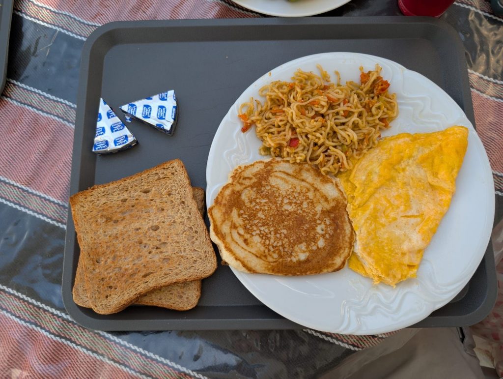 Das Frühstück war gut und reichhaltig. Regina wäre fast aufgestanden und hätte dem Mann geholfen, weil die Teller so halbfertig rumstanden und er uns allen gleichzeitig das fertige Frühstück bringen wollte. Dabei ist das Omelett schon abgekühlt.