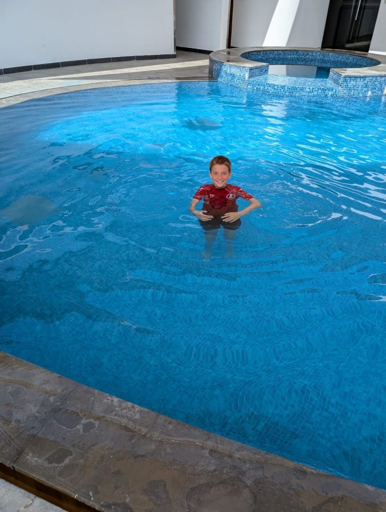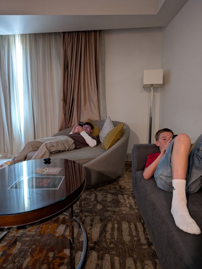 In Maskat sind wir im Fraser Suites Hotel abgestiegen – haben ein riesiges Zimmer mit 3 Schlafzimmern und sehr schöner Einrichtung. Es gibt einen Rooftop-Pool, in dem sich Tobias, Regina und Sebastian erfrischt haben.