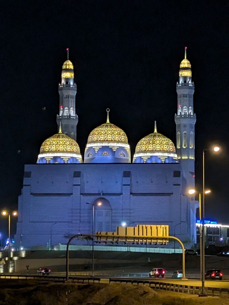 Auf dem Rückweg war es schon dunkel und die Mohammed Al Ameen Moschee war schön beleuchtet.