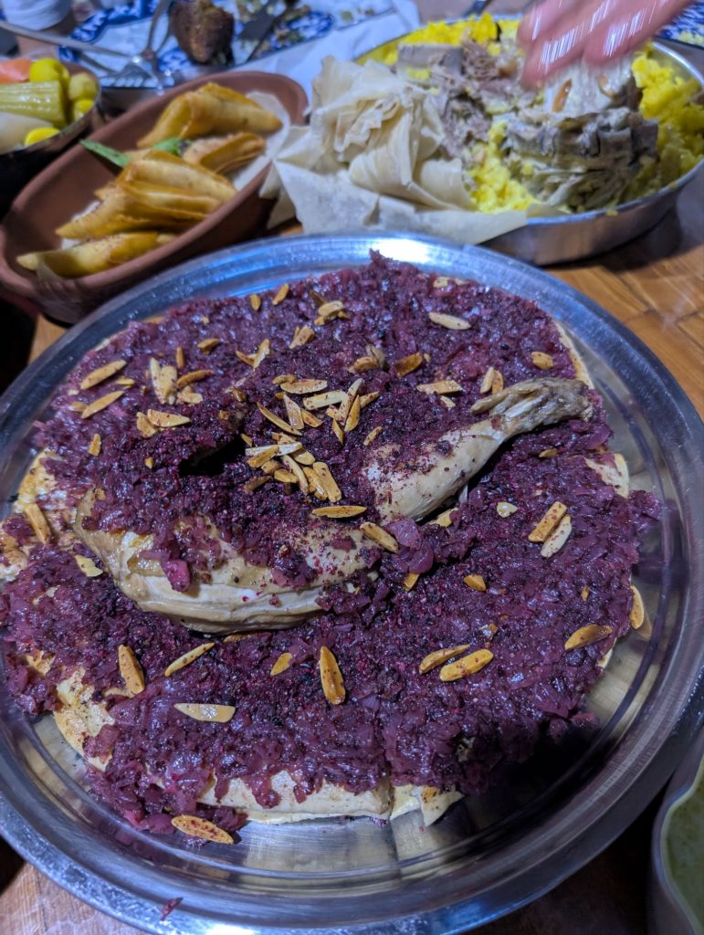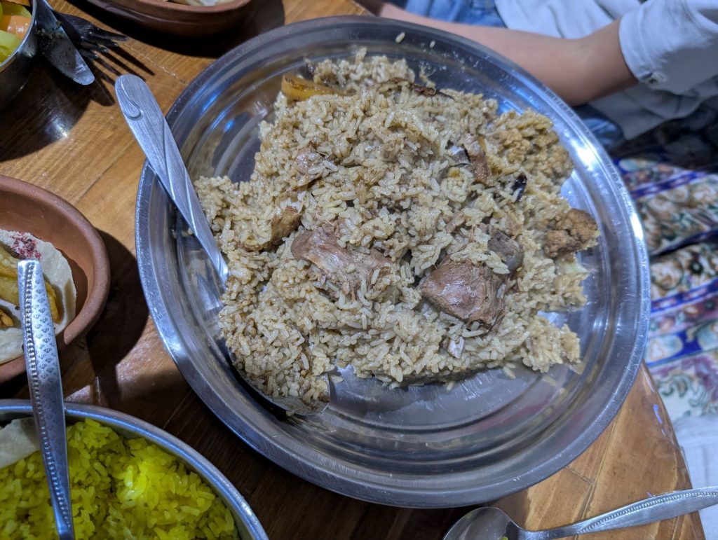 Es hat nicht allen von uns geschmeckt, aber es war eine tolle Erfahrung, weil Salima uns gezeigt hat, wie man das Essen traditionell isst. Sie hat für jeden von uns ein Bällchen geformt und direkt in den Mund gesteckt.